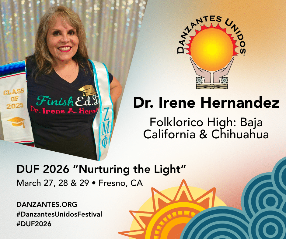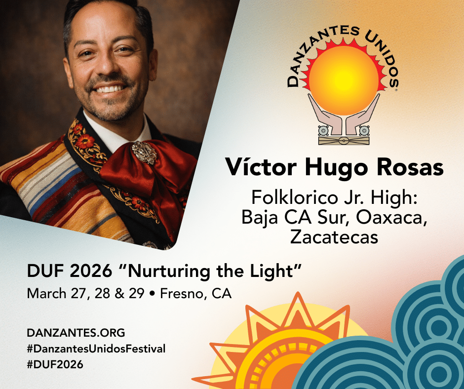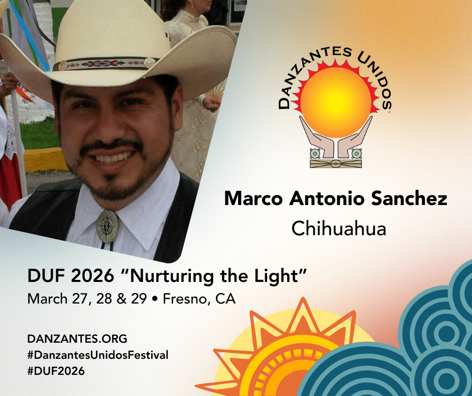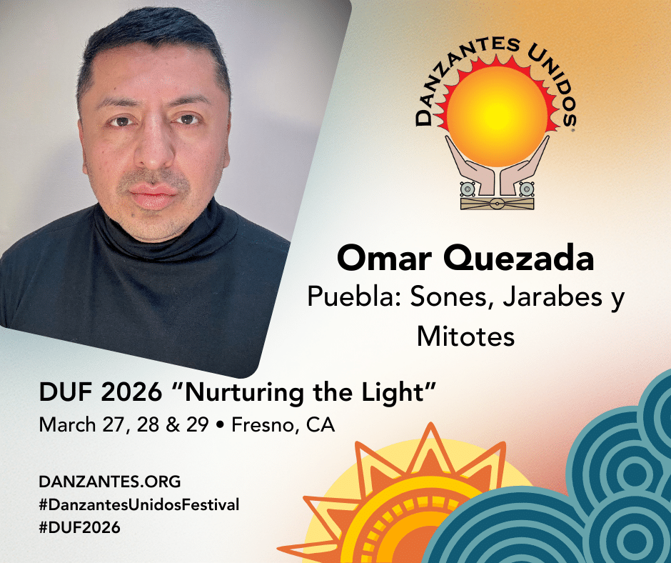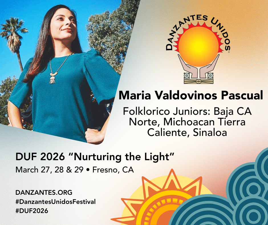 Danzantes Unidos DUF 2026 “Nurturing the Light” welcomes Maissel Vizcarra teaching Folklorico Juniors: Campeche, Coahuila & Quintana Roo; ages 7 & 8. Maissel Vizcarra has been dancing for fifteen years with Tradición Dance Company of Pomona, CA. She has been an instructor for over a decade working with students ages 3 to 63 years. During this time Ms. Vizcarra has also continued her journey as a dancer and as an instructor through participation...