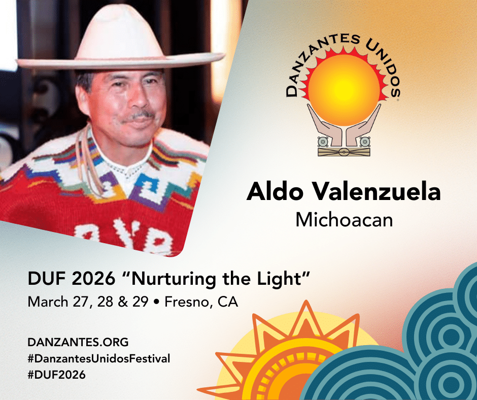 Danzantes Unidos DUF 2026 “Nurturing the Light” welcomes Romualdo “Aldo” Valenzuela teaching Michoacan for Adults; ages 18+.