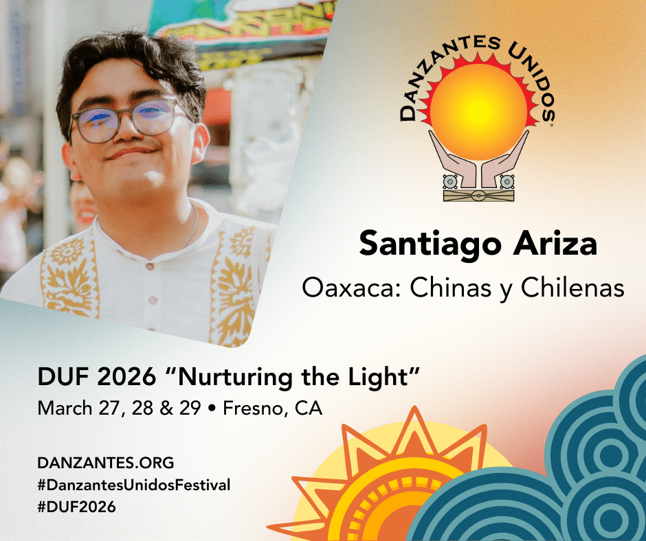 Danzantes Unidos DUF 2026 “Nurturing the Light” welcomes Santiago Ariza teaching Oaxaca: Chinas & Chilenas for Teens & Adults; ages 15+.